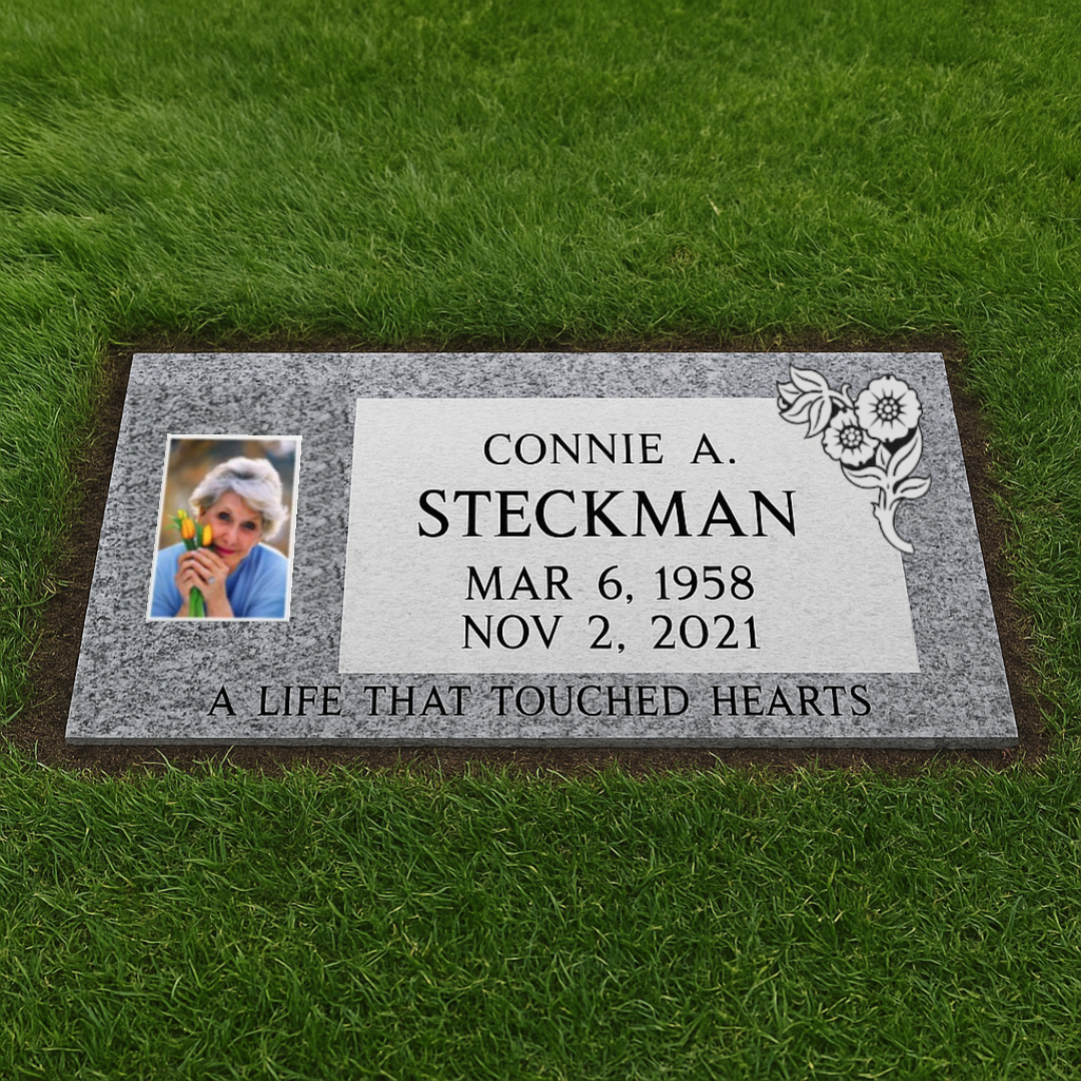 Grey Granite Grass-Level Single Headstone